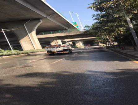 三、医药港工地装修材料路边无序摆放,周边道路如东沙大道等道路积尘较多。