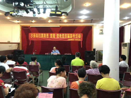 此次活动围绕“重拳打‘伞',惩治涉黑涉恶腐败”为主题开展,通过由派出所副所长讲解涉黑涉恶的有关知识,并展示了广州市扫黑除恶线索举报二维码,呼吁群众积极举报。其次,向居民倡导健康生活方式,介绍毒品对家庭、对社会的危害和影响。由于沙面辖区内老年人和独居老人较多,为防范不法分子冒充熟人进行电信诈骗,派出所还在现场向居民介绍了防范电信诈骗的相关知识,增强居民的自我保护意识。