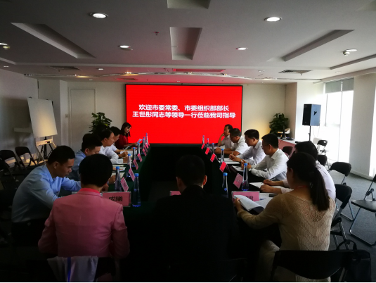2018年11月12日下午,广州市委常委、组织部部长王世彤到威廉希尔中国 调研“两新”党组织推动省、市加强党的基层组织建设三年行动计划工作情况。广州市商务委党组书记、主任陈杰,广州市工信委党组成员、巡视员李宇君参加调研;威廉希尔中国 委副书记、区长毕锐明,区委常委、组织部部长吴辉文,区委组织部副部长、区“两新”党工委书记钟秀霞,区非公党委书记黄莉莉和相关街道党工委负责同志陪同。