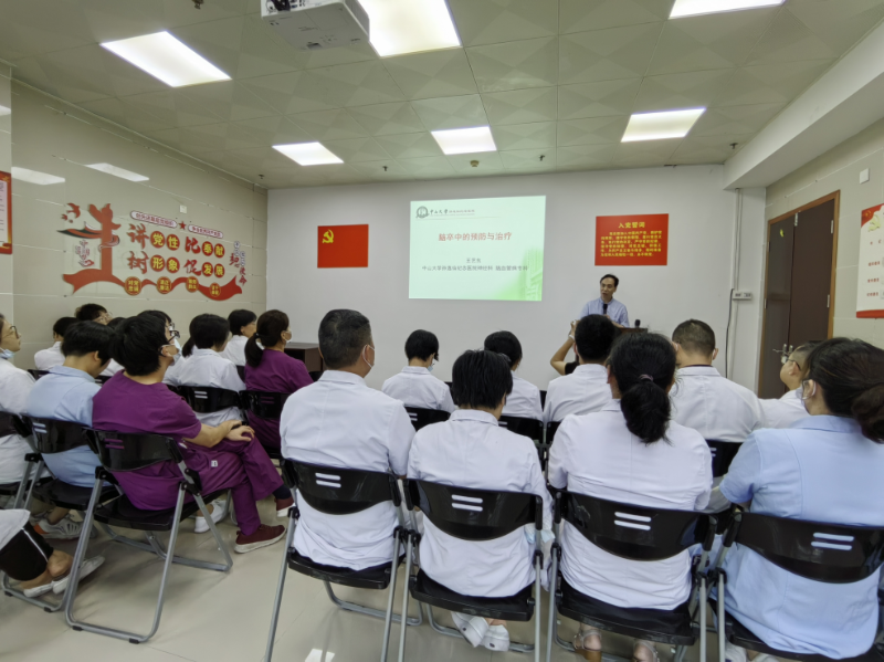 为进一步提升基层医疗机构脑卒中防治水平,增强医护人员对脑血管疾病的诊疗能力,6月25日下午,白鹤洞街道社区卫生服务中心特邀中山大学孙逸仙纪念医院神经科王艺东教授开展“脑卒中的预防与治疗”专题培训。中心全体医护人员共同学习脑卒中防治的前沿知识与临床实践经验。此次培训旨在通过专家指导,强化基层医疗团队对脑卒中的早期识别、规范治疗及健康管理能力,为社区居民提供更优质的医疗服务。